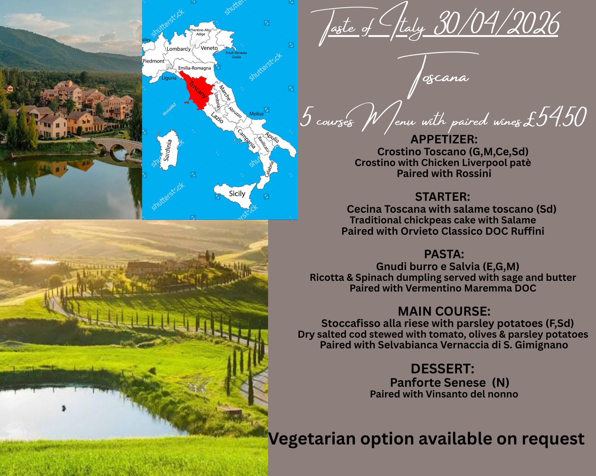 Back to All Events A taste of Italy, Toscana Thursday, April 30, 2026 5:30 PM 11:30 PM Rustico Italian Bistro 7 New Road Leighton Buzzard, England, LU7 2LS United Kingdom (map) Google Calendar ICS Book now